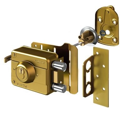 La cerradura S400 sirve de complemento de SEGURIDAD o cerradura secundaria, ya que no viene con tirador. Comúnmente en puertas de metal o rejas.